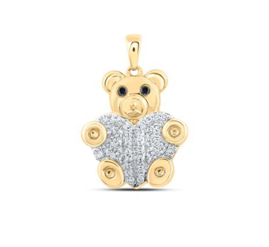 10k Round Black 3/8 Cttw Diamond Heart Bear Charm