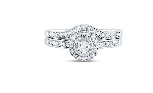 10K Round Diamond Halo Bridal Wedding Ring Set