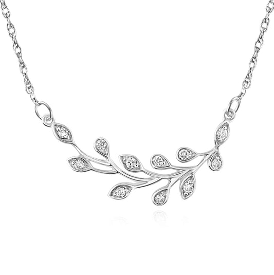 10K 1/6 Cttw Diamond Floral Branch Necklace, 18