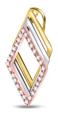 10K Tri-Tone Diamond Diagonal Square Pendant
