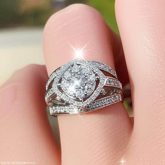 10K White Gold Halo Engagement Ring – 1 Carat Total Diamond Weight