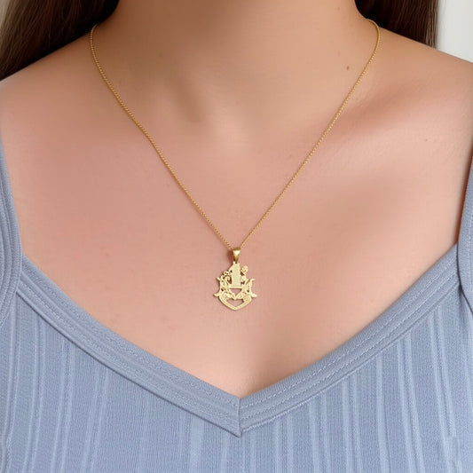 10K Yellow Gold 1 CTTW Diamond Mermaid Circle Charm Pendant