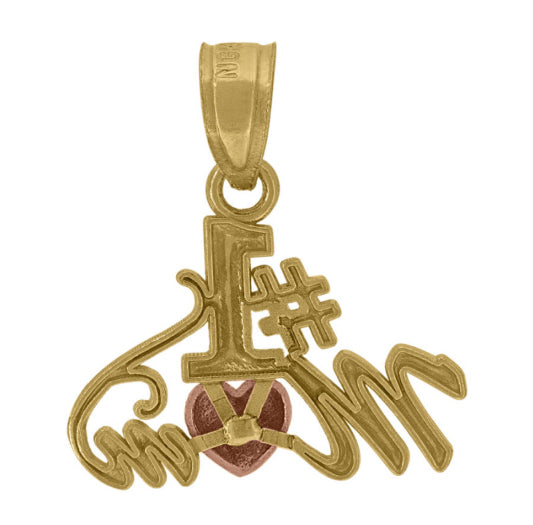 10K Yellow Gold #1 Mom Charm with Rose Gold Heart – Mother’s Gift