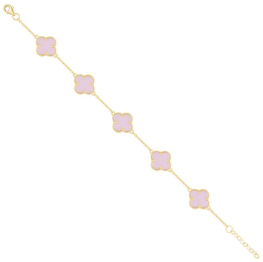 10K Yellow Gold 9 mm Clover Pink Bracelet – 7.5” Adjustable