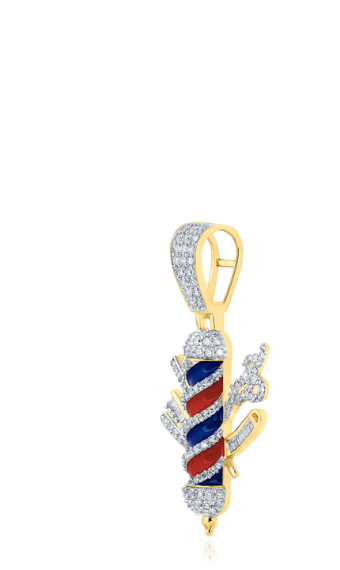 10k Yellow Gold Baguette 7/8 Cttw Diamond Barber Pole Charm