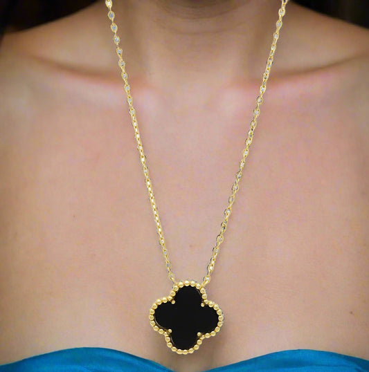 10K Yellow Gold Black Clover Necklace – 12mm Pendant