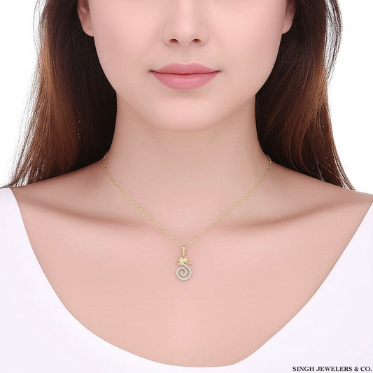 10K Yellow Gold Diamond Seahorse Necklace – 1/8 CT