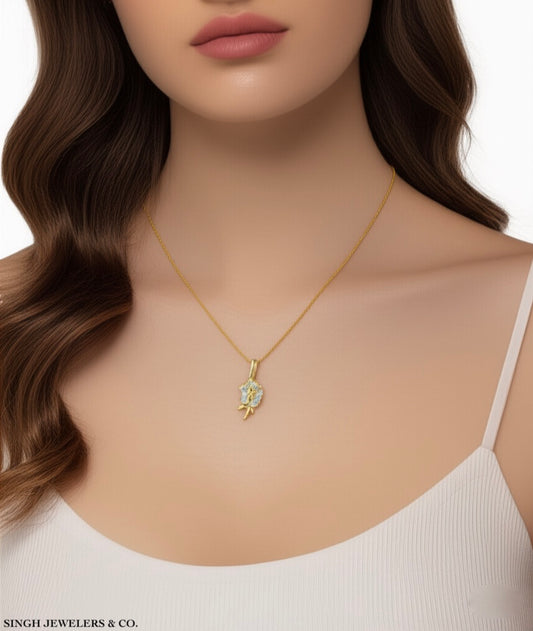 10K Yellow Gold Diamond Rose Charm Necklace – 18" Chain