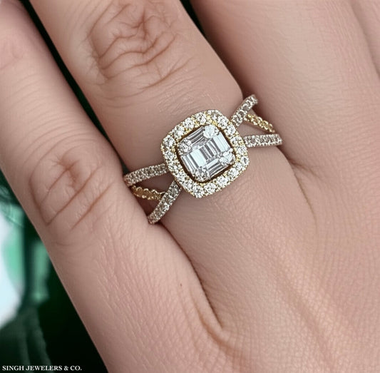 10k Yellow Gold Double Halo Square 1/2 Cttw Diamond Engagement Ring – Size 7