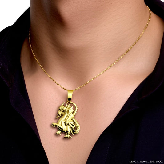 10K Yellow Gold Dragon Charm Pendant – Mythical Jewelry for Men & Women
