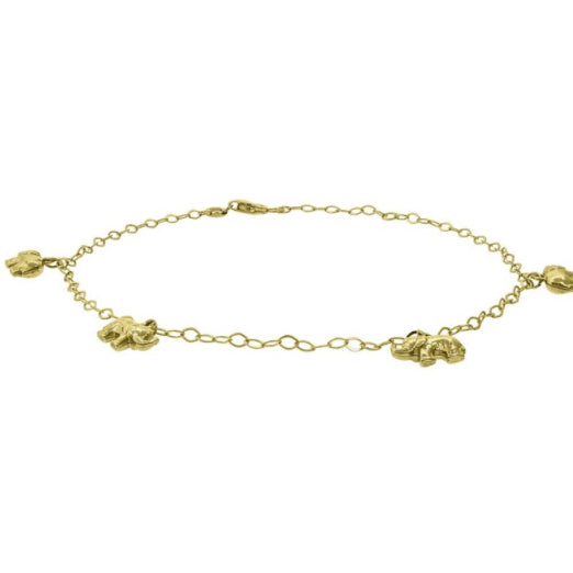 10K Yellow Gold Elephant Charms Anklet – 10 Inches