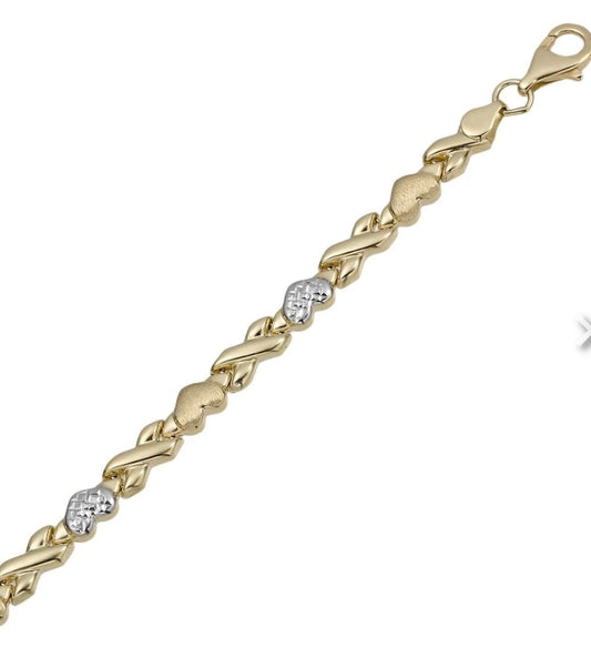 10k Yellow Gold Heart & Kisses Stampato Ladies Bracelet