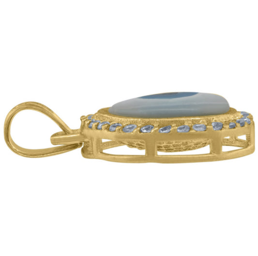 10k Yellow Gold Good Luck Cubic-Zirconia Evil Eye Round Pendant | Protection Jewelry