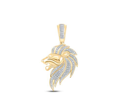 10k Yellow Gold Lion Head 1/3 Cttw Diamond Charm