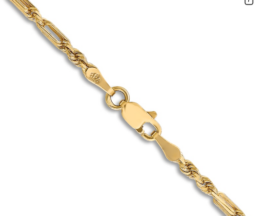 10K Yellow Gold Milano Rope Bullet 2.5mm Chain