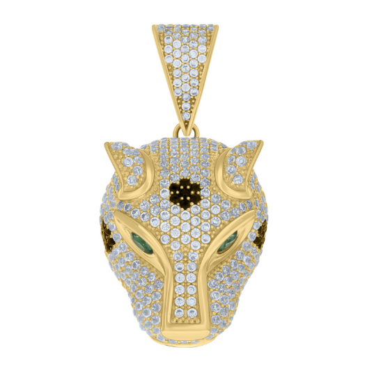 10k Yellow Gold Mens CZ Panther Head Animal Wildlife Charm