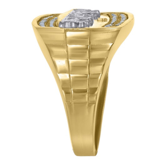 10K Yellow Gold Men’s Bull Head Animal Ring with Cubic Zirconia – Size 10