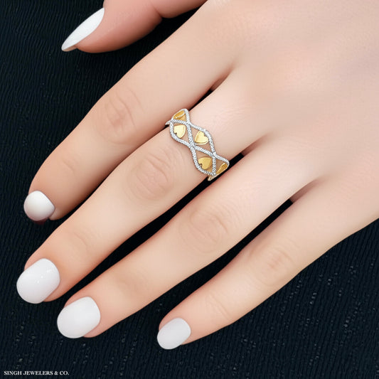 10K Yellow Gold Rotating Hearts Diamond Band | 1/5 Cttw Diamonds