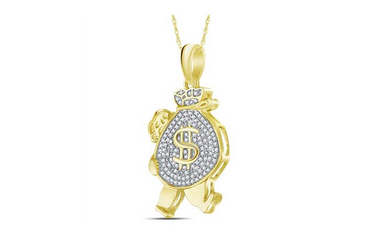 10k Yellow Gold Round Diamonds Money Bag Man Charm