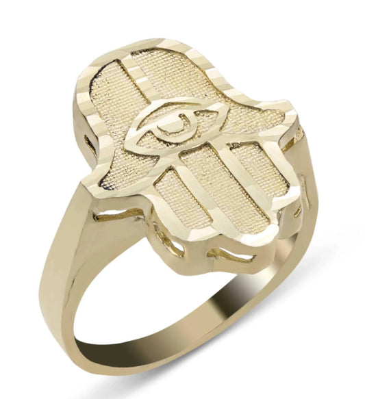 10K Yellow Gold Solid Hamsa Evil Eye Ring