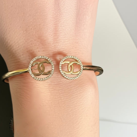 10k Yellow Gold White Sapphire Bangle Bracelet