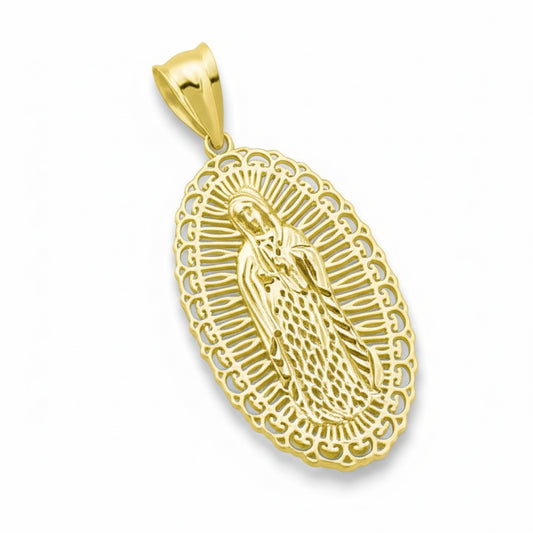 10K Yellow Gold Virgin Mary Diamond Cut Charm