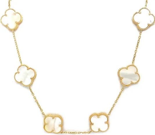 10K Yellow Gold White Clover Necklace