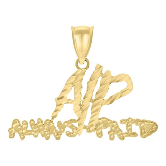 10k Yellow Gold ‘Always Paid’ Charm – Diamond-Cut Hip Hop Pendant for Chains