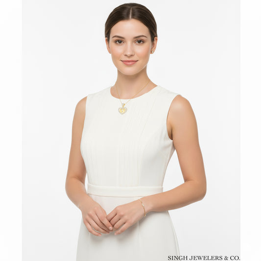 10kt Gold Baby Footprint Heart Pendant with CZ