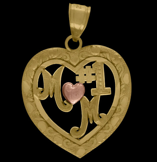 10kt Two-Tone Gold #1 Mom Rose Heart Charm