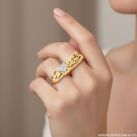 10kt Two-Tone Gold 'I Love You' Cubic Zirconia Two-Finger Ring