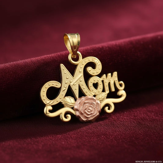10kt Two-Tone Gold Diamond-Cut Mom Rose Charm for Women