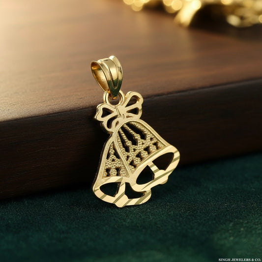 10kt Yellow Gold Diamond-Cut Bells Charm Pendant for Women