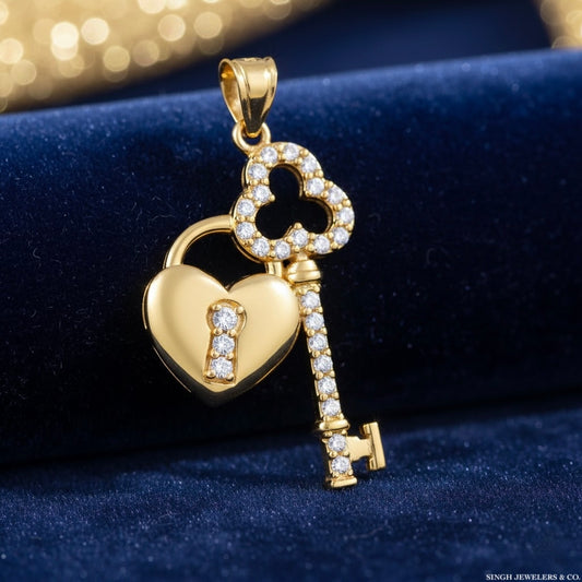 10kt Yellow Gold Cubic Zirconia Heart Key Pendant for Women