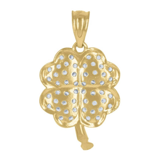 10kt Yellow Gold Clover Good Luck Charm Pendant – St. Patrick’s Day Gift, Lucky Clover Necklace