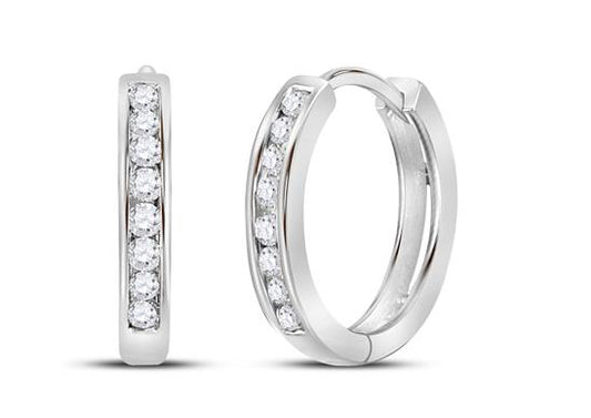 14K Channel Set 1/4 Cttw Diamond Hoop Earrings | Channel Setting