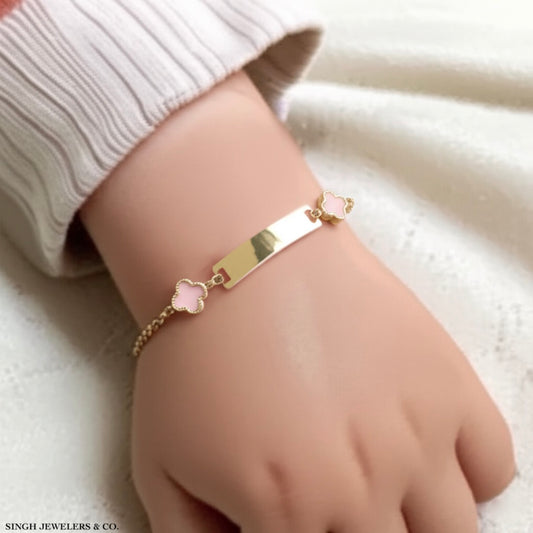 Baby ID Bracelet in 10K Gold – Pink Clover, 5” Adjustable