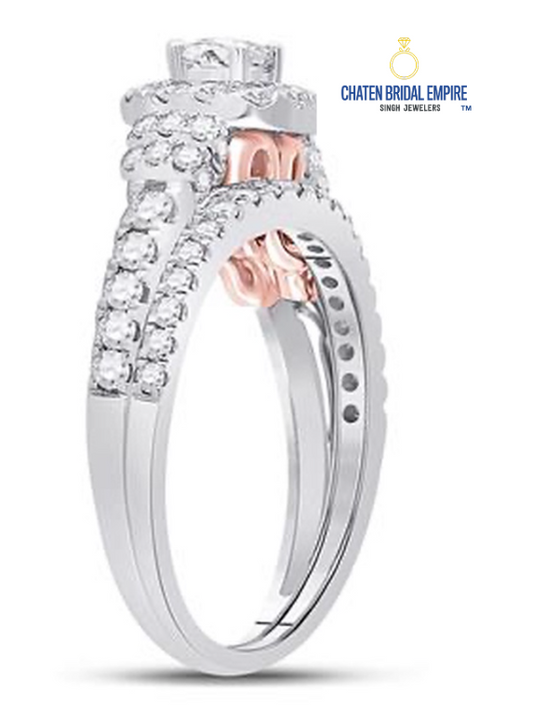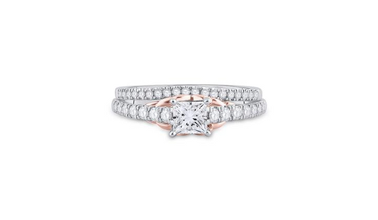 14K Two-Tone Gold Round Diamond Bridal Wedding Ring Set