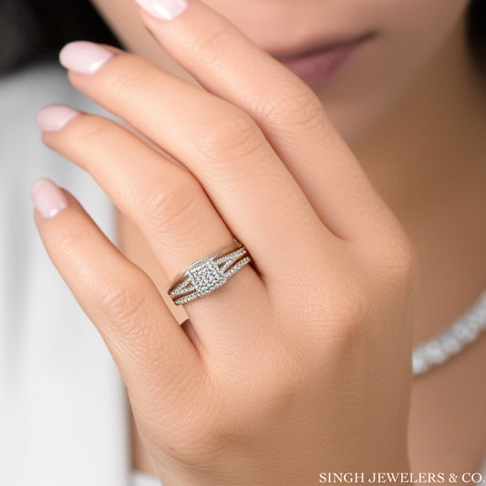 Sterling Silver 1/4 CTTW Diamond Bridal Wedding Ring Set