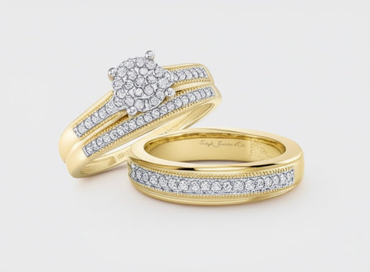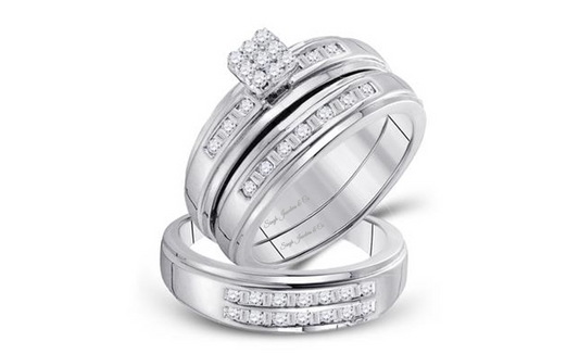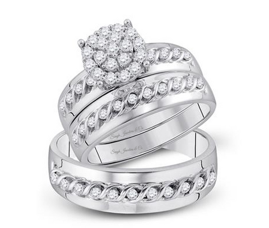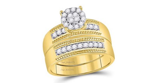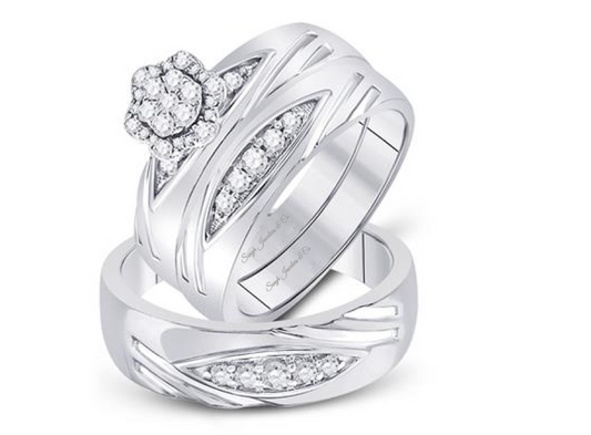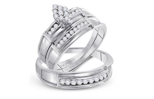 10K Gold Round Diamond Matching Trio Wedding Ring Set – 1/3 Cttw