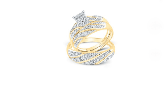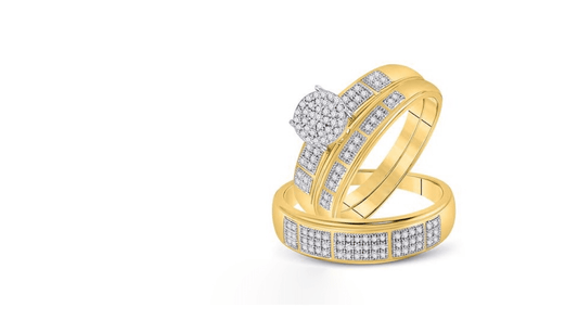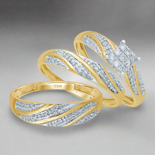 His & Hers Diamond Trio Wedding Ring Set – 10K Yellow Gold, 1/2 CTW