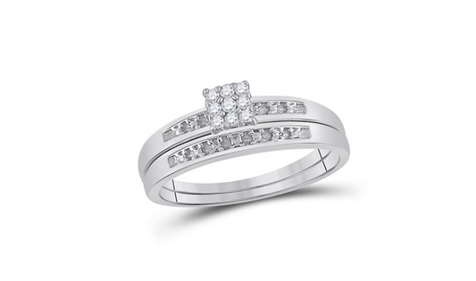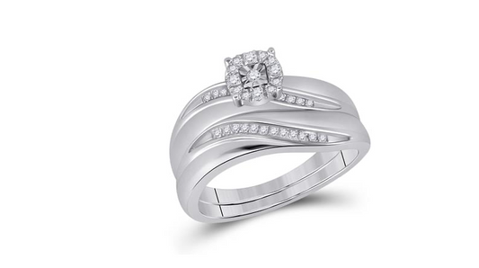 Sterling Silver Diamond Wedding Trio Ring Set – 1/20 Cttw