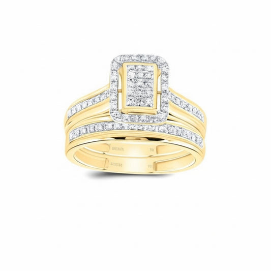 Bridal Trio Ring Set – Asscher Cut, 1/3 CTW, 10K Yellow Gold