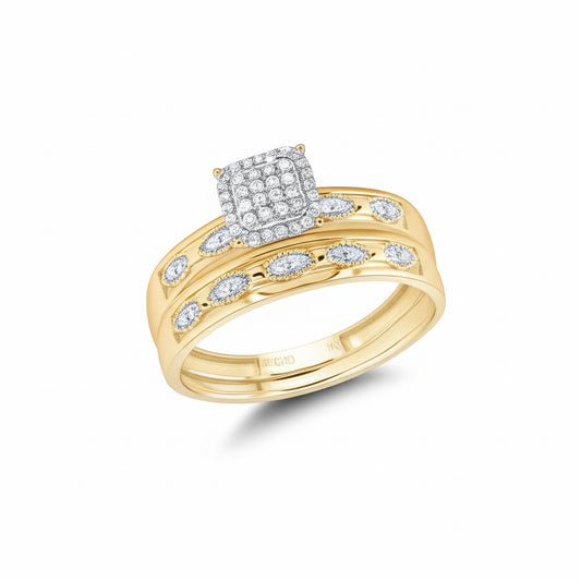 10K Yellow Gold Marquise Halo Diamond Trio Bridal Set – 1/4 Cttw