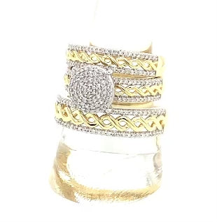 10K Yellow Gold His & Hers Trio Ring Set – 1/4 Cttw Diamond