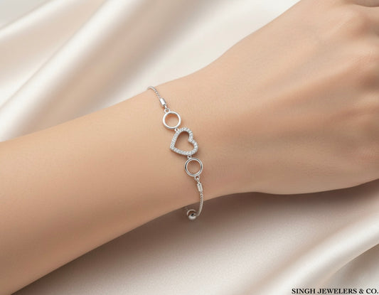 Sterling Silver Diamond Heart Bolo Bracelet – 1/10 CTTW