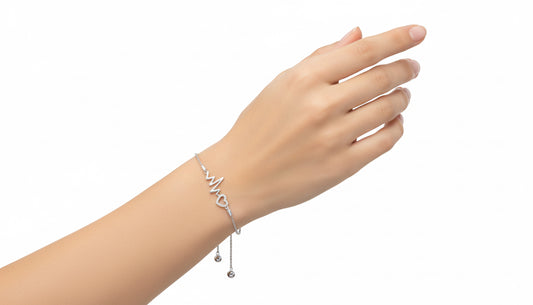 Diamond Heart & Heartbeat Bolo Bracelet in Sterling Silver – 1/8 CT