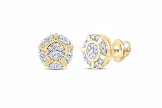 10K Gold Crown Diamond Stud Earrings – 1/4 Cttw Round-Cut