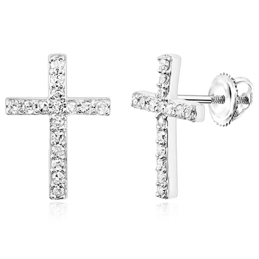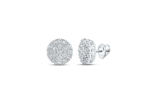 10k White Gold Square 1/4 Cttw Round Diamond Studs