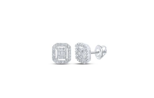 10K 3/8 Cttw Diamond Baguette Clover Earrings